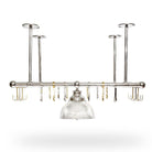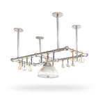 The Pot Rack with Holophane Lights is an Ann-Morris signature that redefines the art of kitchen elegance. Customizable to any size and suited to any ceiling height, it offers a range of lighting options to set the perfect mood for your culinary creations. With finishes of your choosing, it integrates seamlessly into the heart of your home. Dual-purpose hooks allow you to display your cookware with pride or keep it handy for the next gourmet adventure. This isn't just a pot rack it's a pivotal piece that infuses every meal with the legacy of the Ann-Morris brand.
