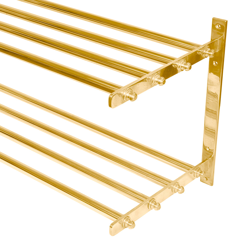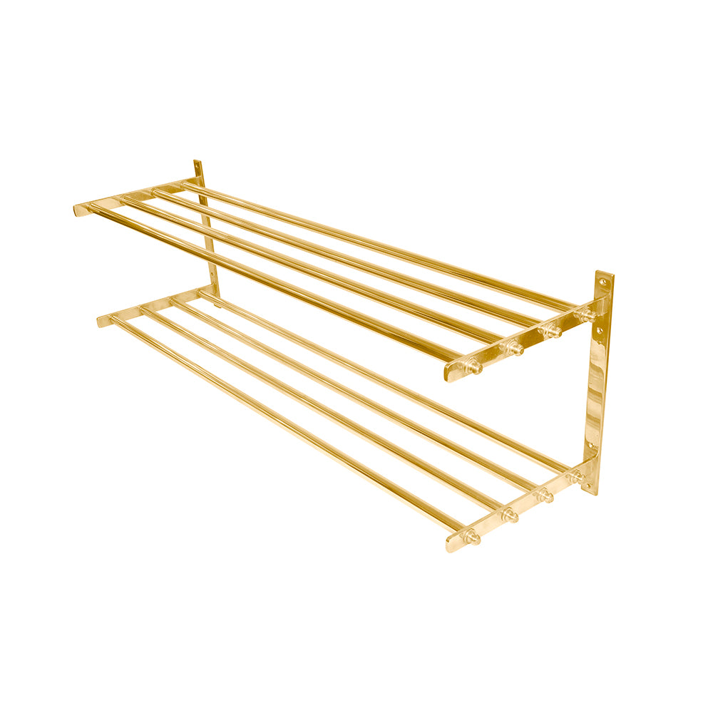Elevate your entryway or storage space with the Ann-Morris Double Shelf. Crafted in classic brass, this timeless piece offers two levels of sturdy, wall-mounted storage. Its metal construction ensures durability and style, making it the perfect solution for organizing and showcasing your essentials. Whether in an entryway, bathroom, or kitchen, this elegant shelf seamlessly blends functionality with sophisticated design.