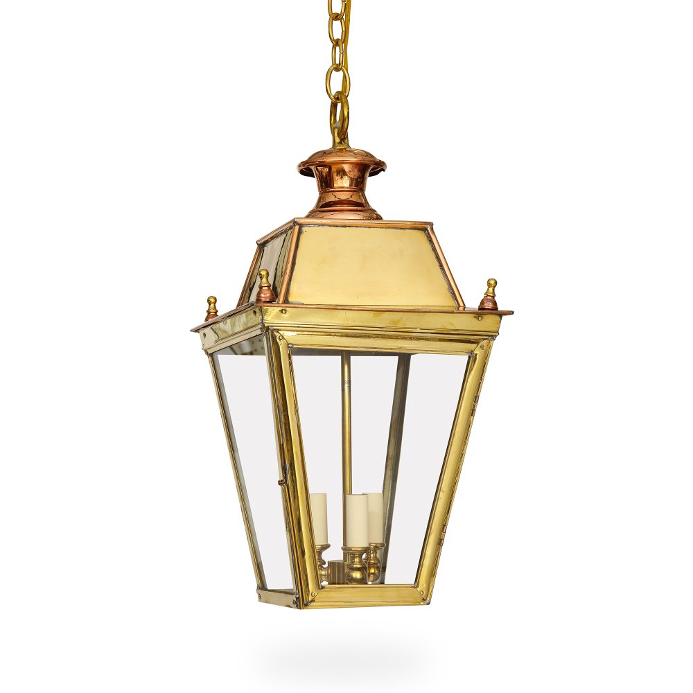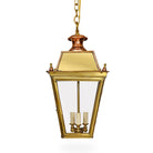 Immerse yourself in the timeless allure of the Large Hanging Kensington. This hanging fixture, with its four-sided design, captures the essence of traditional English gas lamp posts. Tailor it to your taste with Ann-Morris' array of signature metal finishes and choose between the classic chain or a custom stem for a personalized touch.