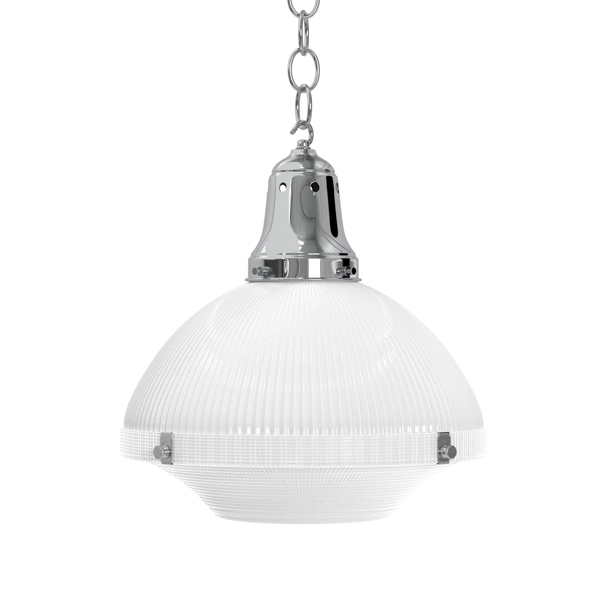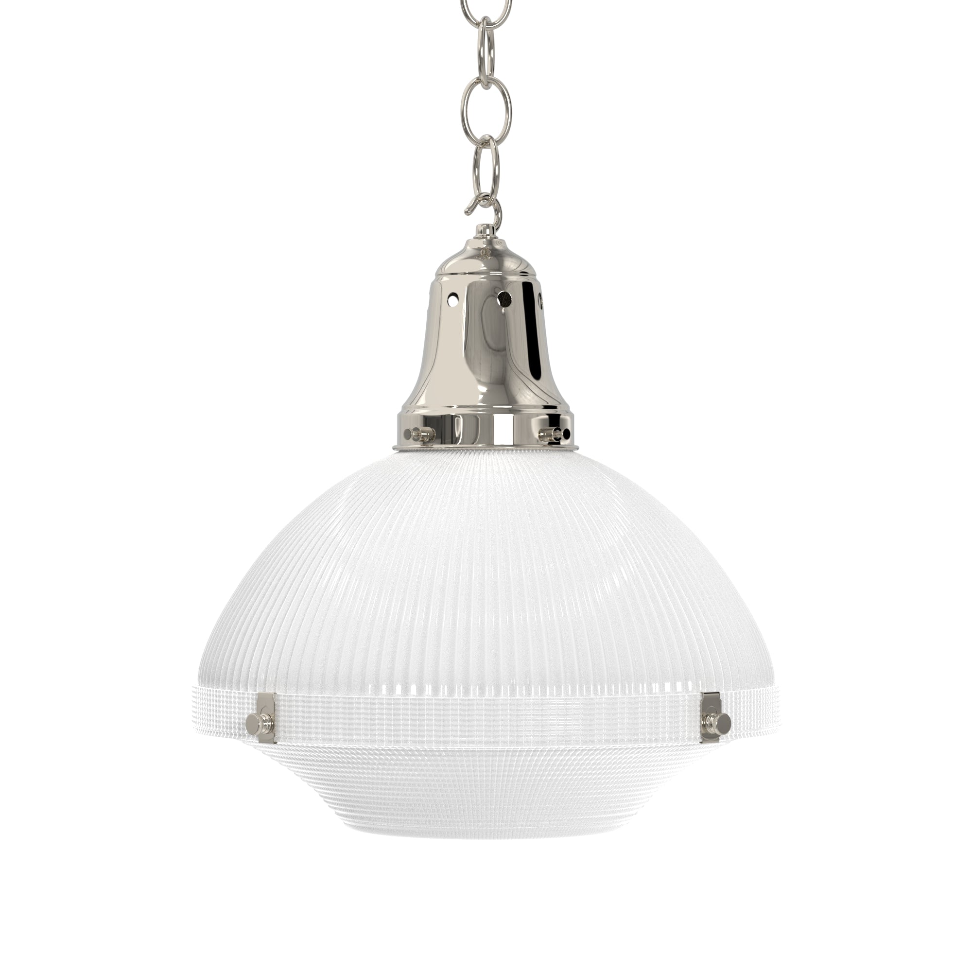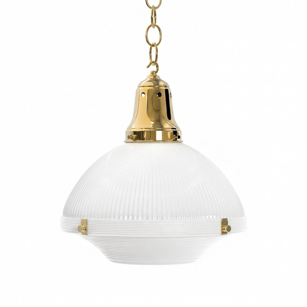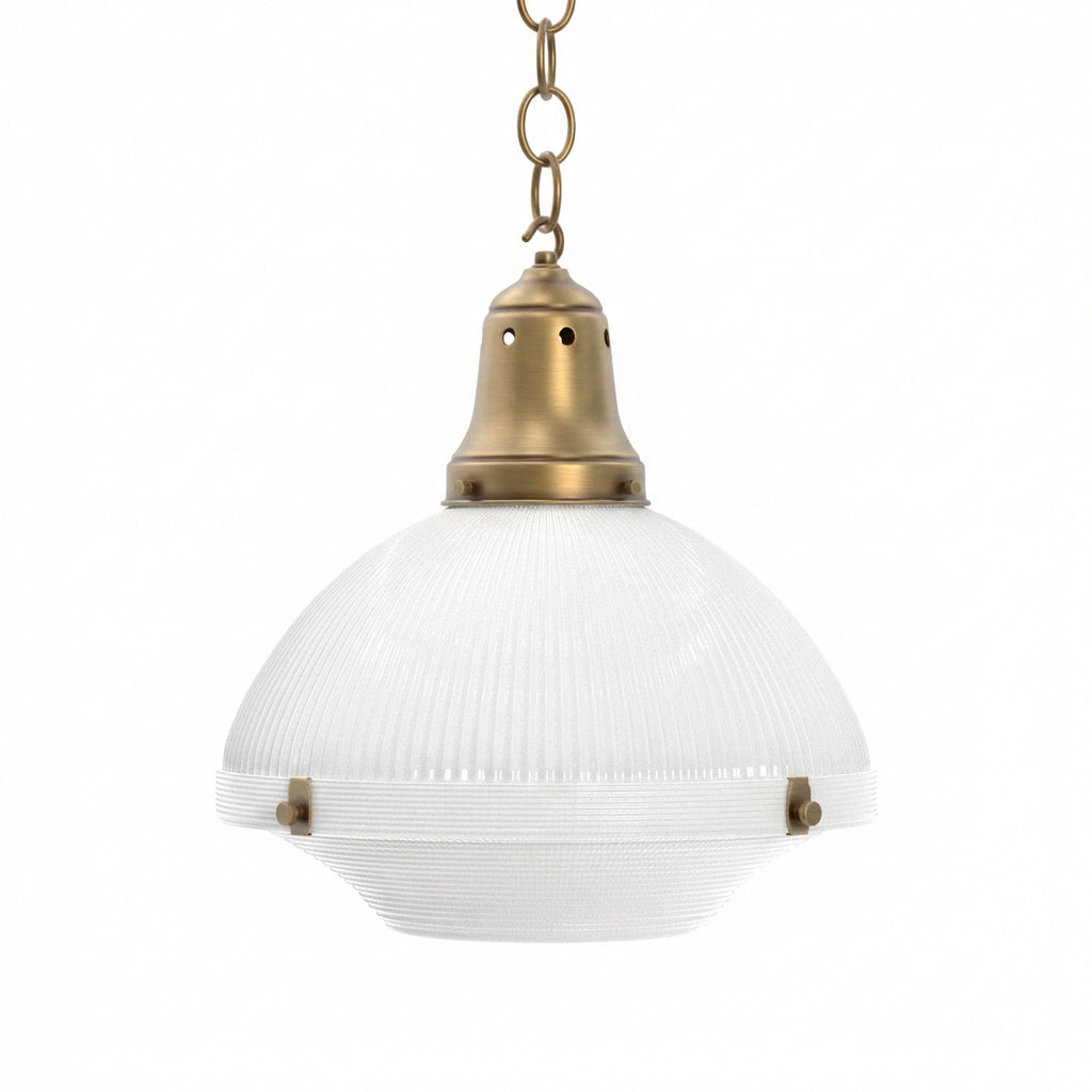 Elevate your ambiance with the Two Part Holophane Light, designed for those who appreciate the clarity and spread of well-diffused lighting. This piece blends seamlessly into any setting, courtesy of Ann-Morris' extensive metal finish palette. With options for chain or stem suspension, it brings tailored illumination to your space.