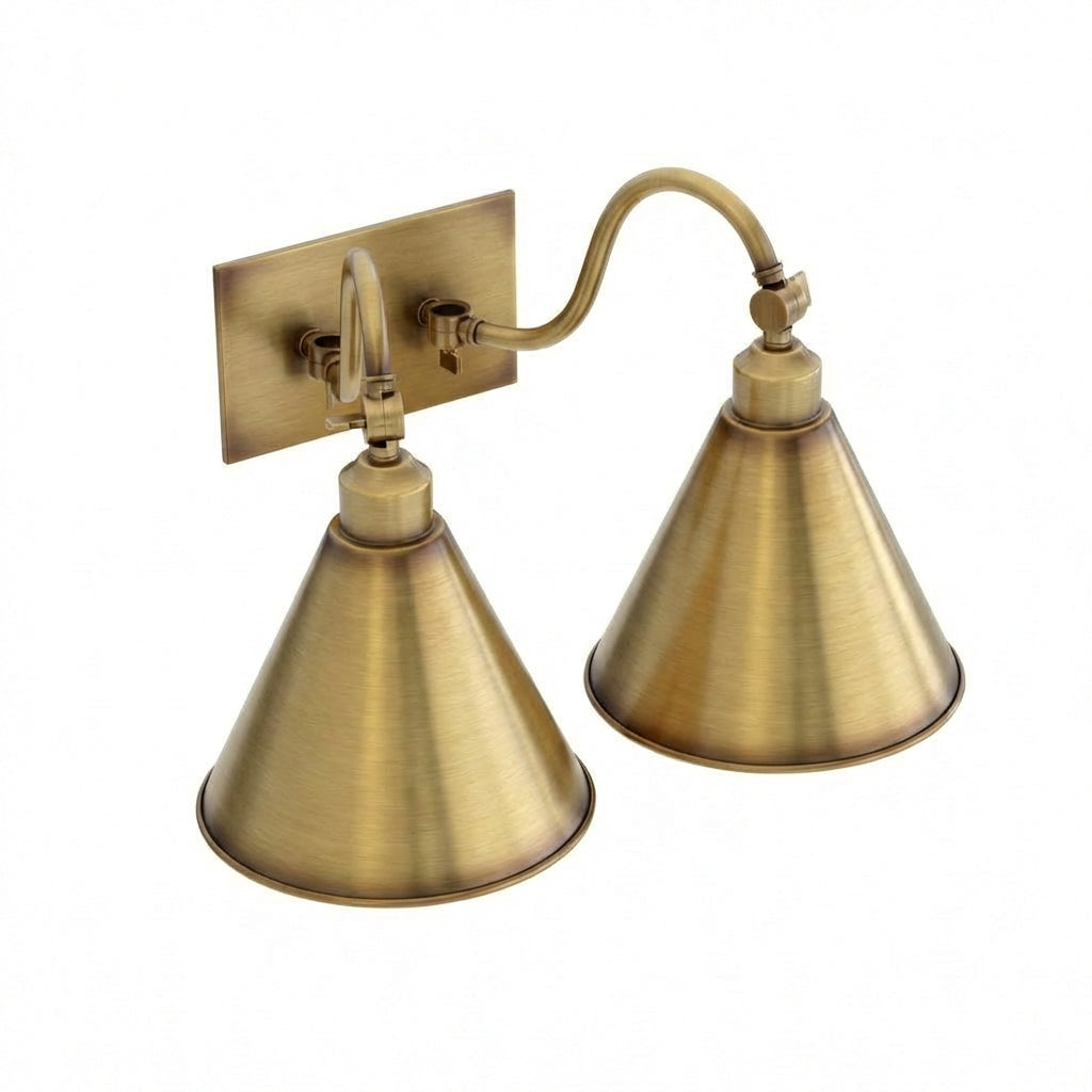 The Double Roosevelt Gooseneck Arm Metal Shade sconce from Ann-Morris is a symphony of form and function. With its elegantly curved arms and industrial-chic metal shades, this fixture is versatile enough for a bookcase or any space requiring a touch of refined utility. Crafted with Ann-Morris' hallmark attention to detail and offered in exclusive finishes, it stands as a beacon of style that seamlessly integrates into the cultivated home.