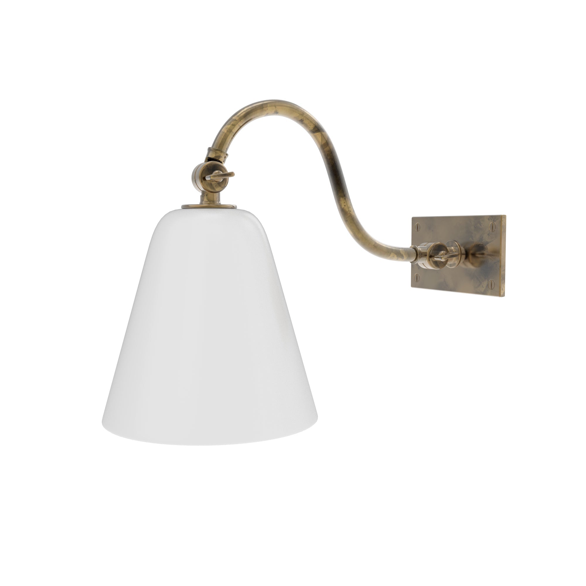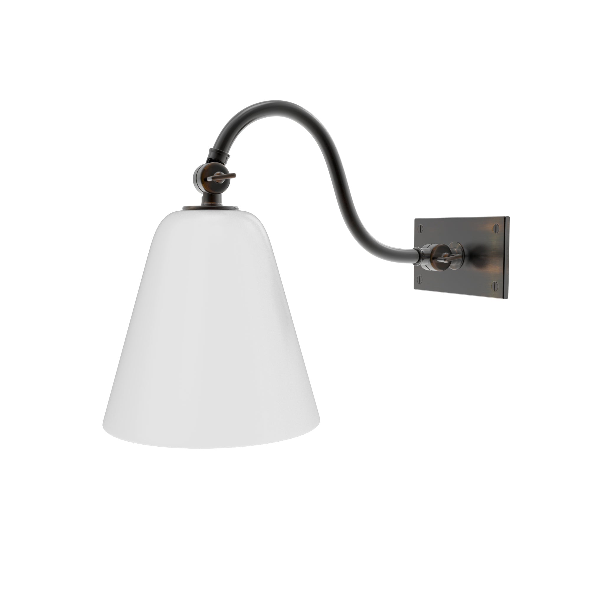 Roosevelt Sconce with White Glass Shade - Curved Arm