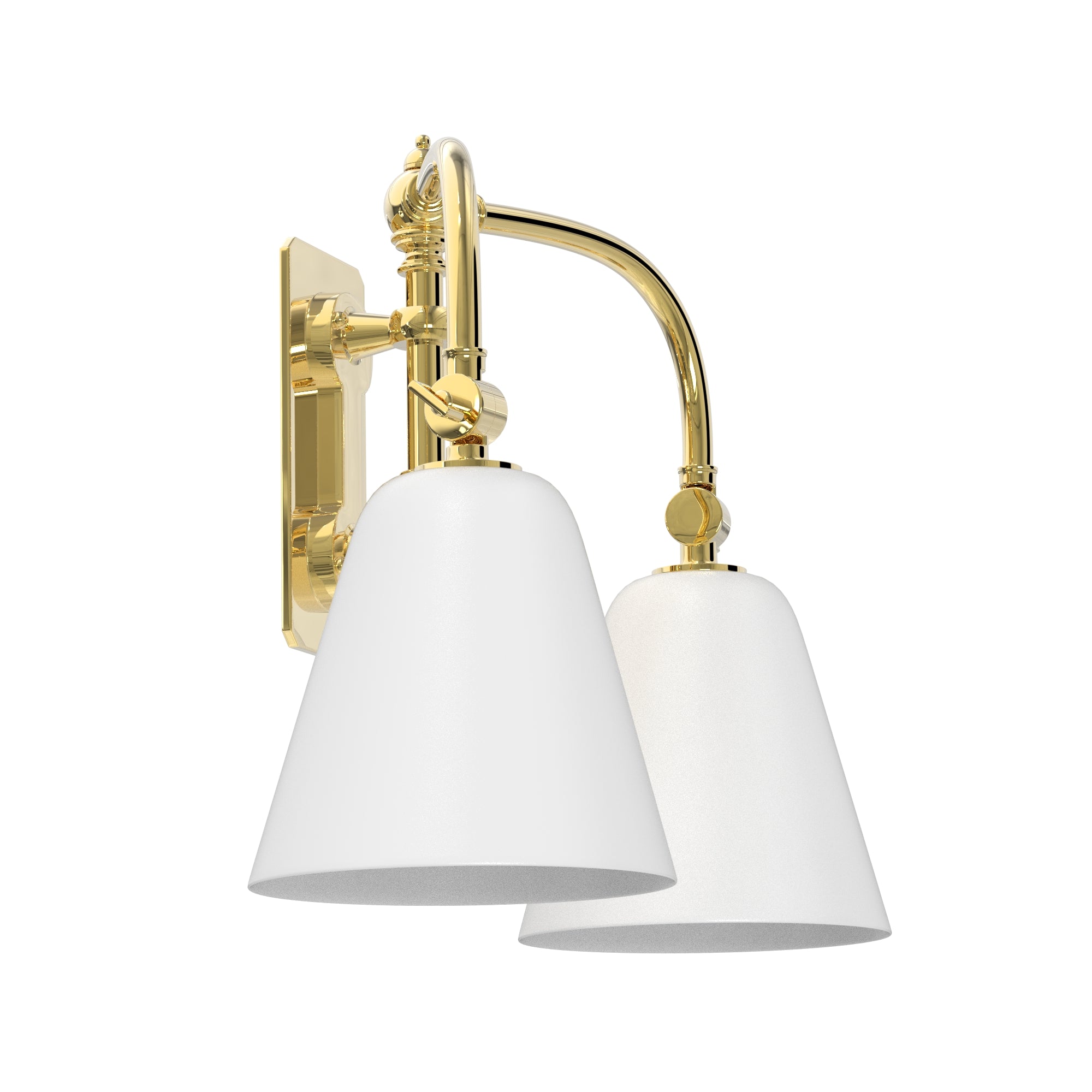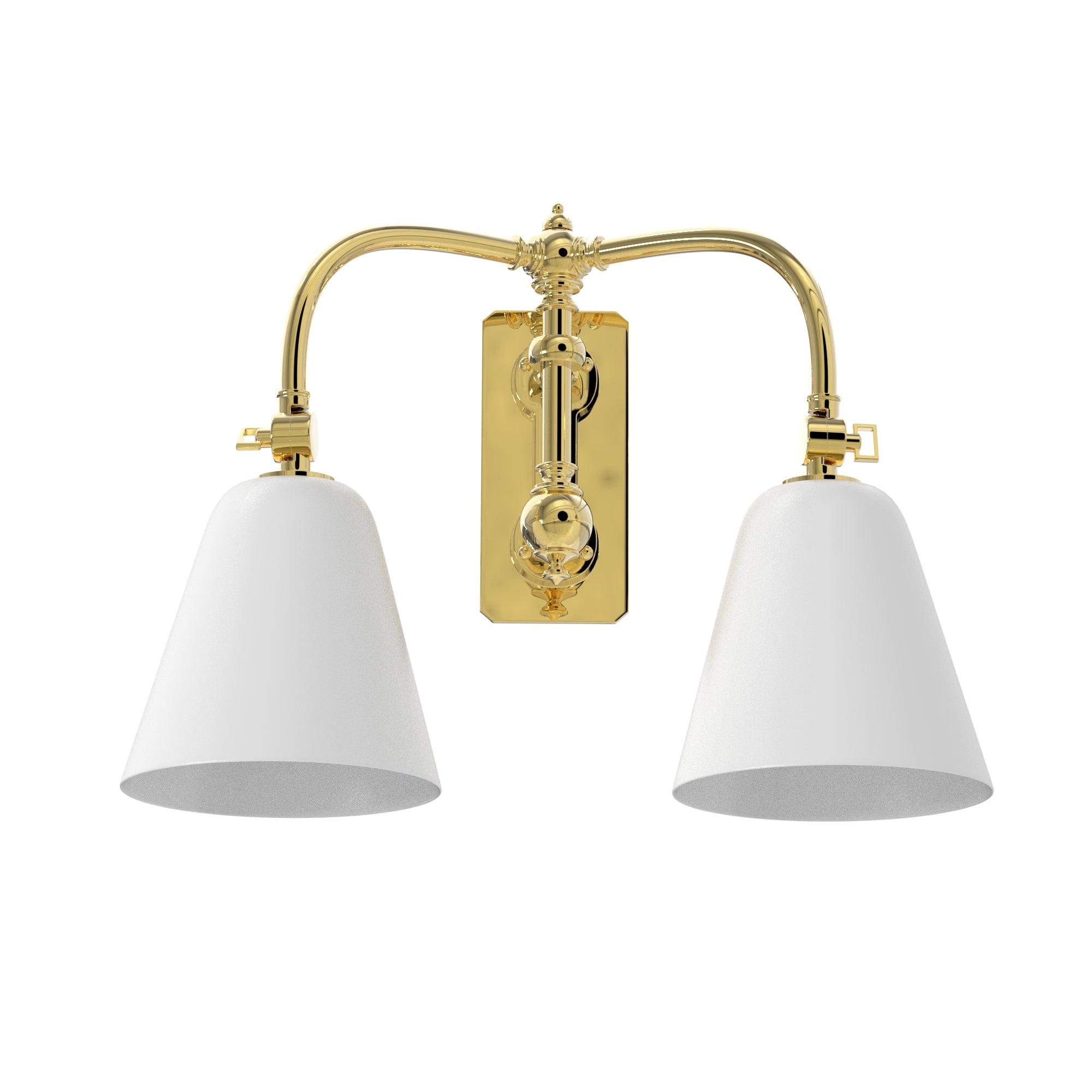 Ann-Morris' Double Short Swing Arm sconce is a testament to the elegance of simplicity and the efficiency of design. Its adjustable arms and classic white glass shades make it perfect for focused task lighting in a study or soft ambient light in a living space. Available in various signature metal finishes, this sconce is a versatile addition to any interior design, providing both style and utility where it's most needed.