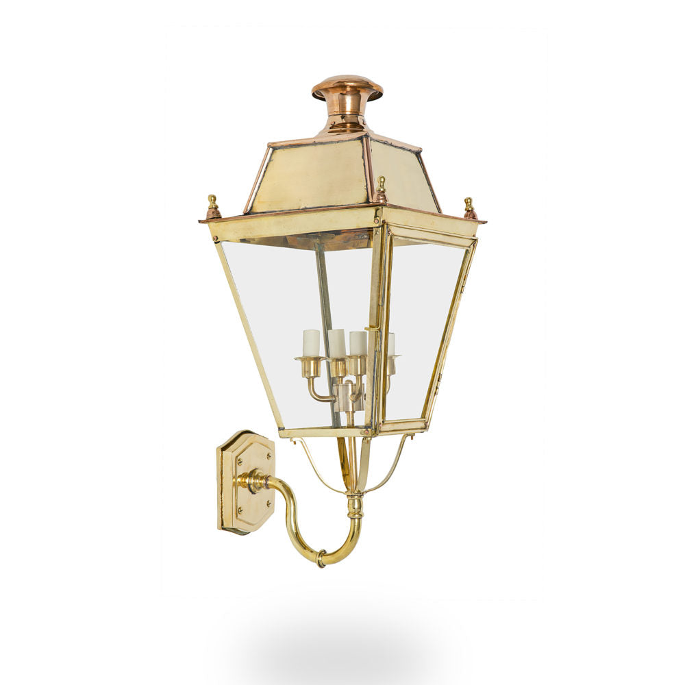 Immerse yourself in the timeless allure of the Kensington on Bracket. This classic fixture, with its four-sided design, captures the essence of traditional English gas lamp posts. Tailor it to your taste with Ann-Morris' array of signature metal finishes and choose between three dimensional sizes for a personalized touch. Each fixture is hand crafted in your choice of finish with copper accents.