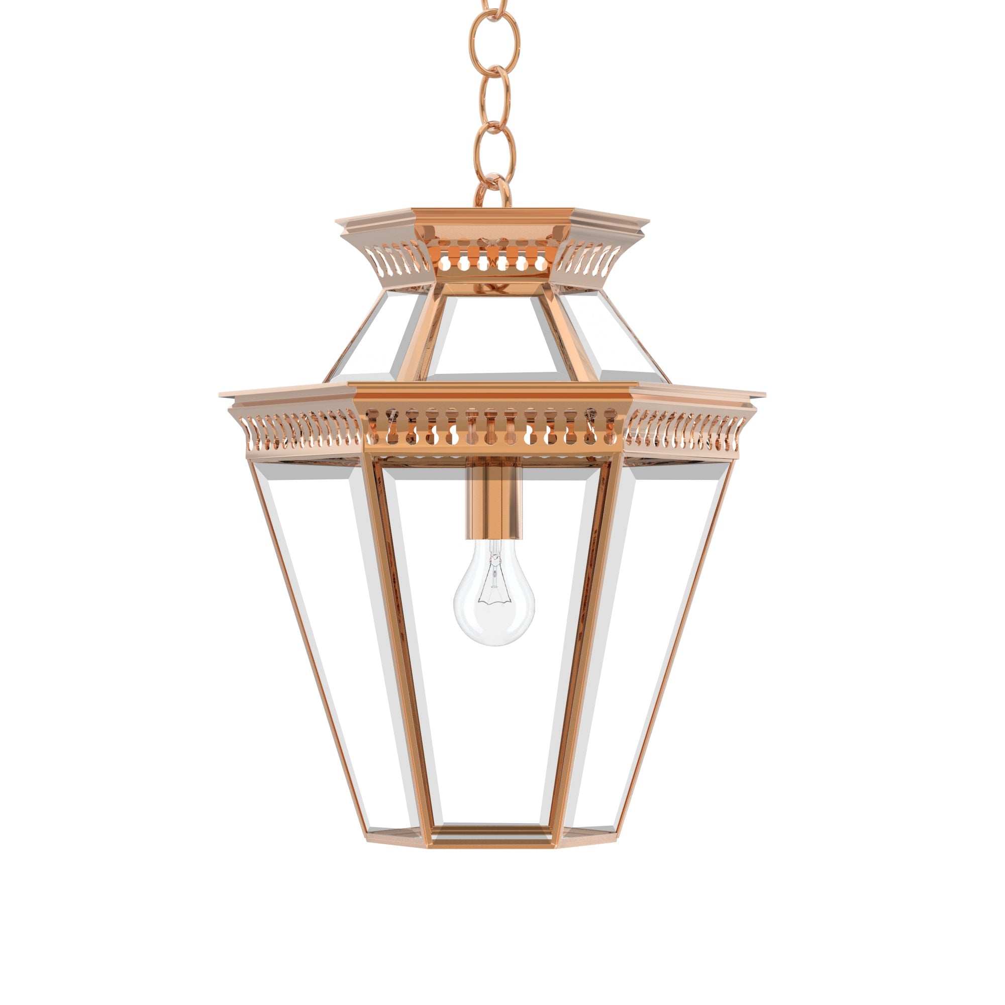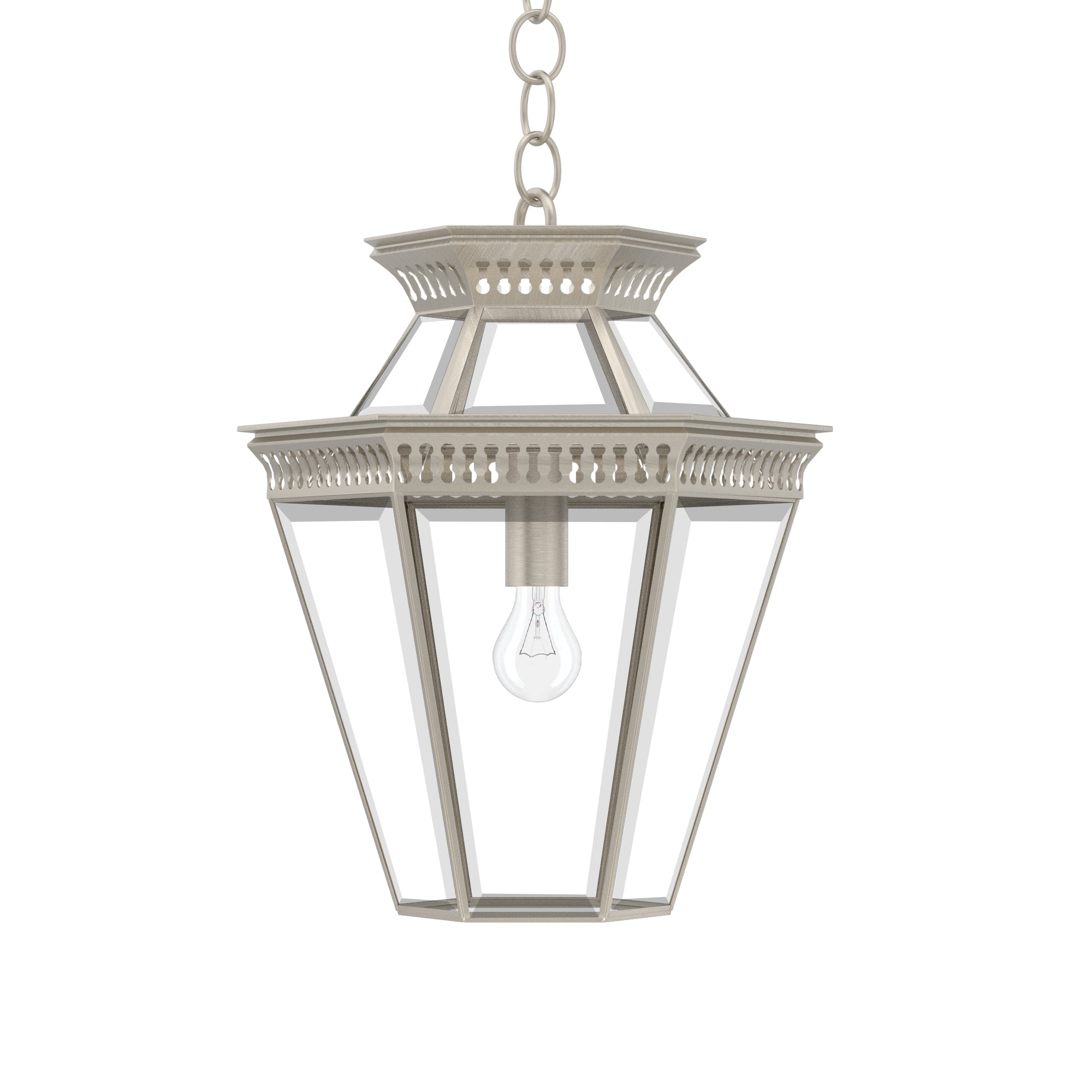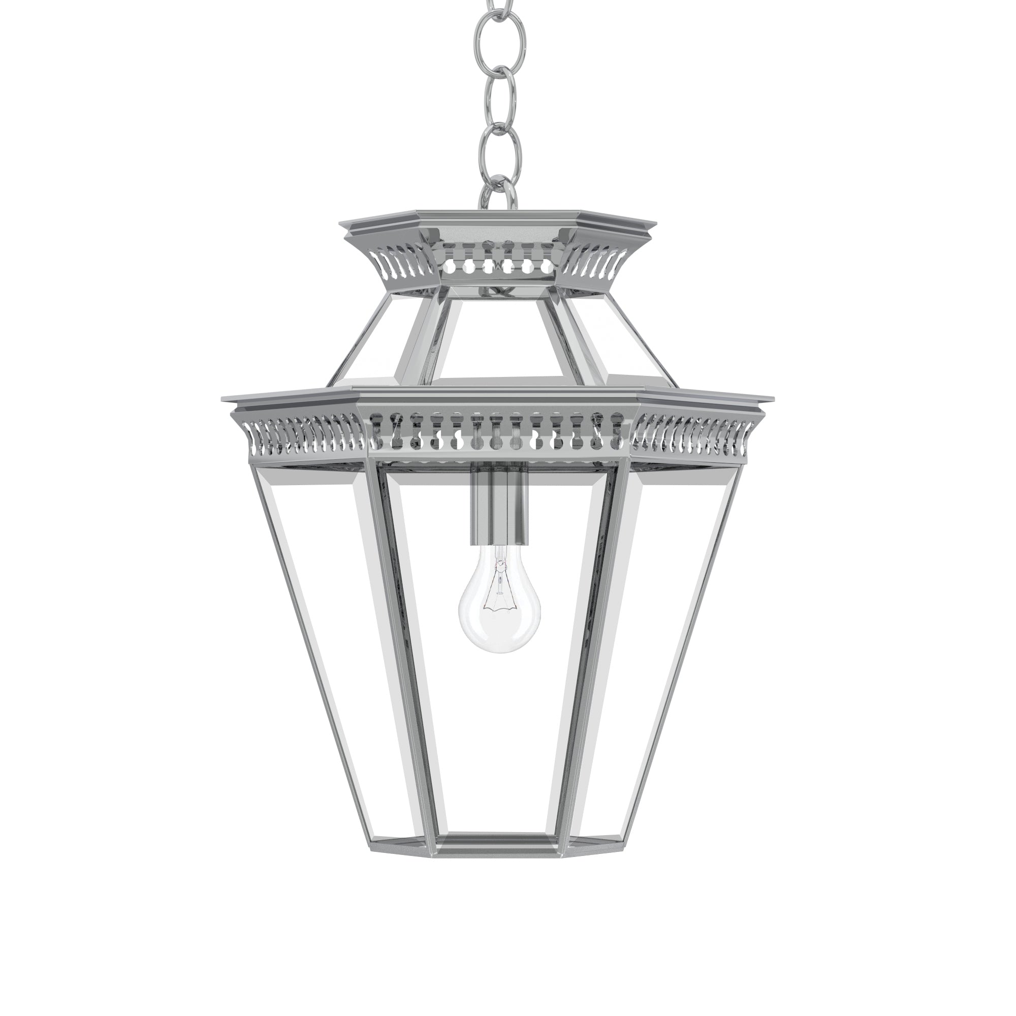 Step into the realm of geometric elegance with the Pagoda Polygon Light, a six-sided incarnation of the classic Pagoda series from Ann-Morris. Meticulously hand-finished in the complete range of Ann-Morris signature metal finishes, this lantern-style pendant is a marvel of design. Equipped with a matching chain or a bespoke stem option, it's a beacon of sophistication that casts a generous glow, ideal for welcoming guests in entryways or illuminating vast spaces with a singular, majestic light.