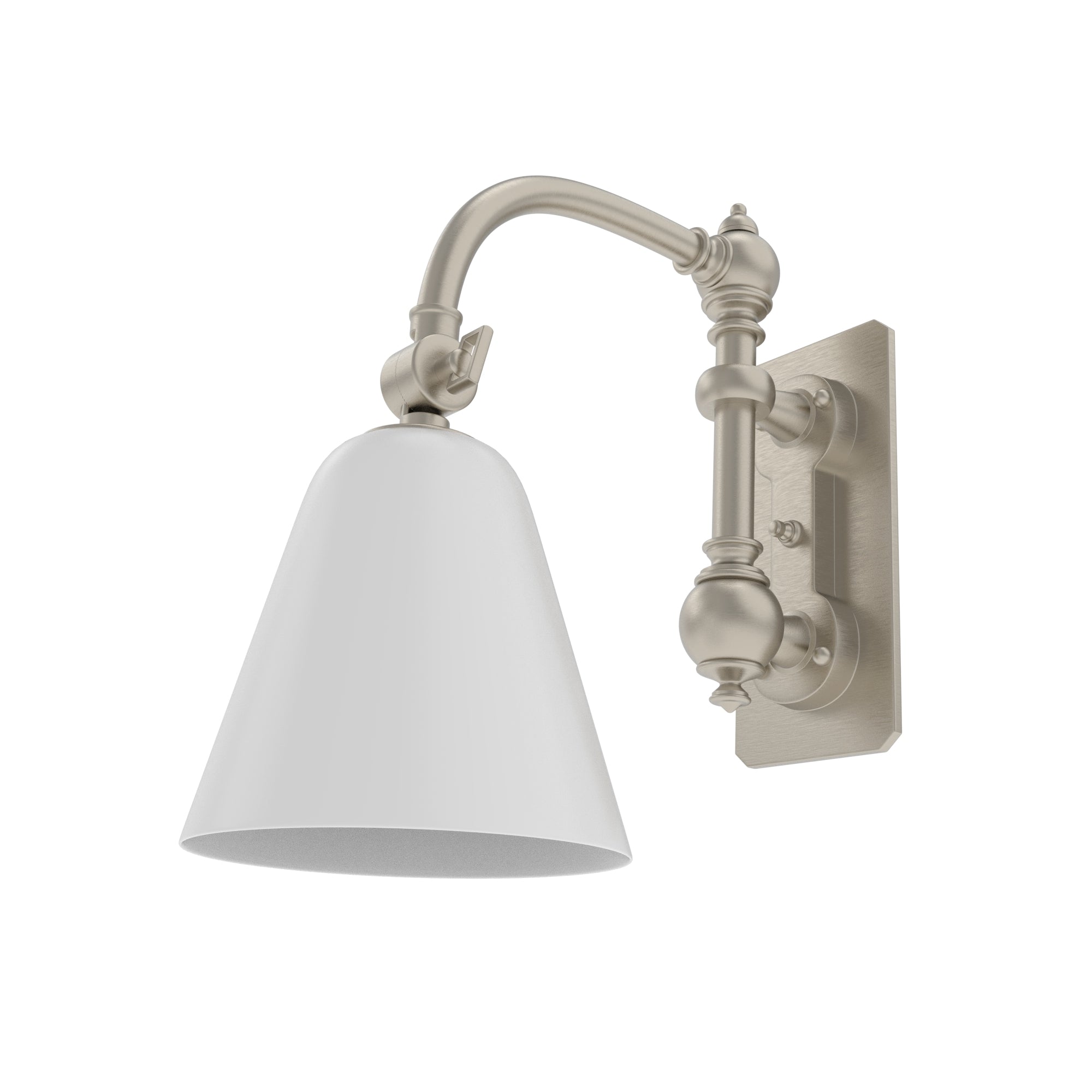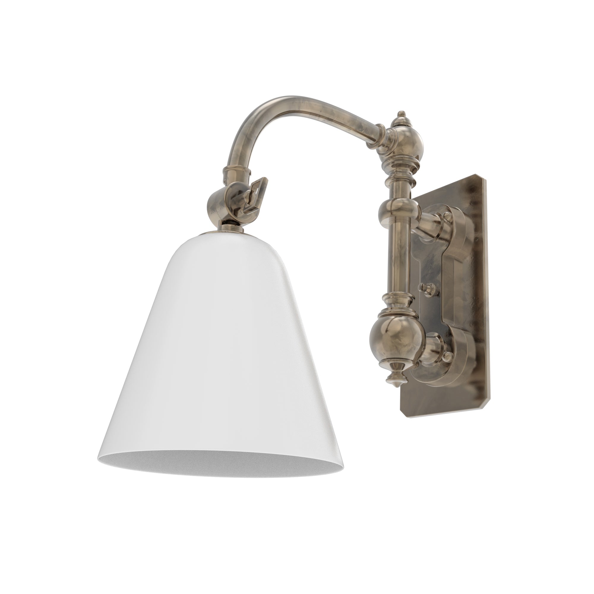 Ann-Morris' Short Swing Arm Sconce blends functionality and aesthetic charm, perfect for the discerning decorator. This sconce, with its graceful curved arm, can be customized in a choice of signature metal finishes, complementing its surroundings. The white glass shade option fills your space with a soft glow, ideal for creating a welcoming hallway ambiance, while the painted metal shade is suited for concentrated light in studies or reading nooks. It's not just a light; it's a statement of style and practical design.
